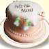 torta forrada con masa elastica en 3 niveles el 1ro es uno de 30 x 40 cm al cual decoré con semi circulos y blondas , el 2do y 3ro solo le puse semicirculos marcados En la parte superior hice una muñequita utilizando el molde delas muñecas anteriores , con vestido blanco y en la cabeza le puse una coronita de flores